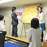 ファンの前へ ▲里見女流三冠-△吉田四段戦